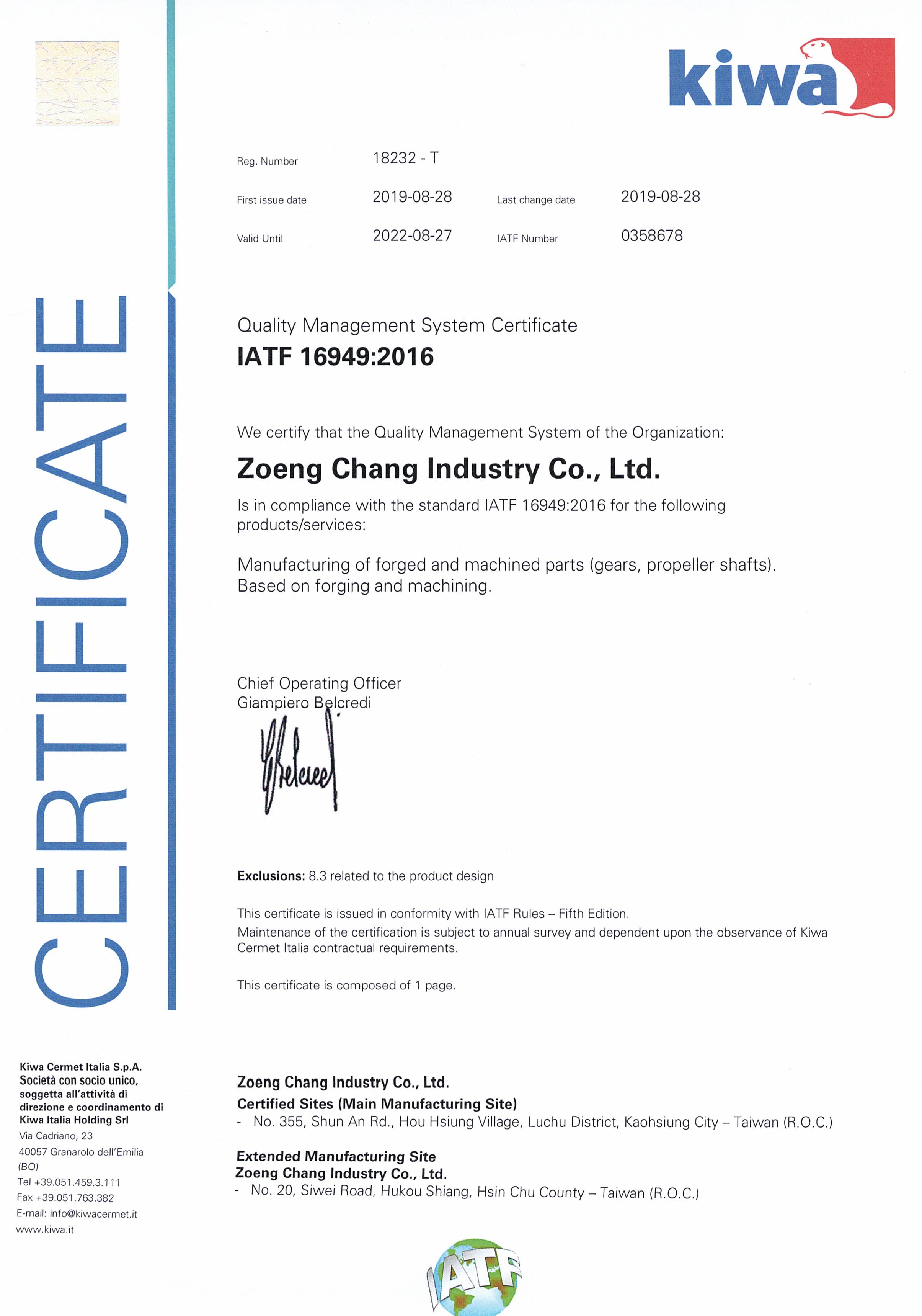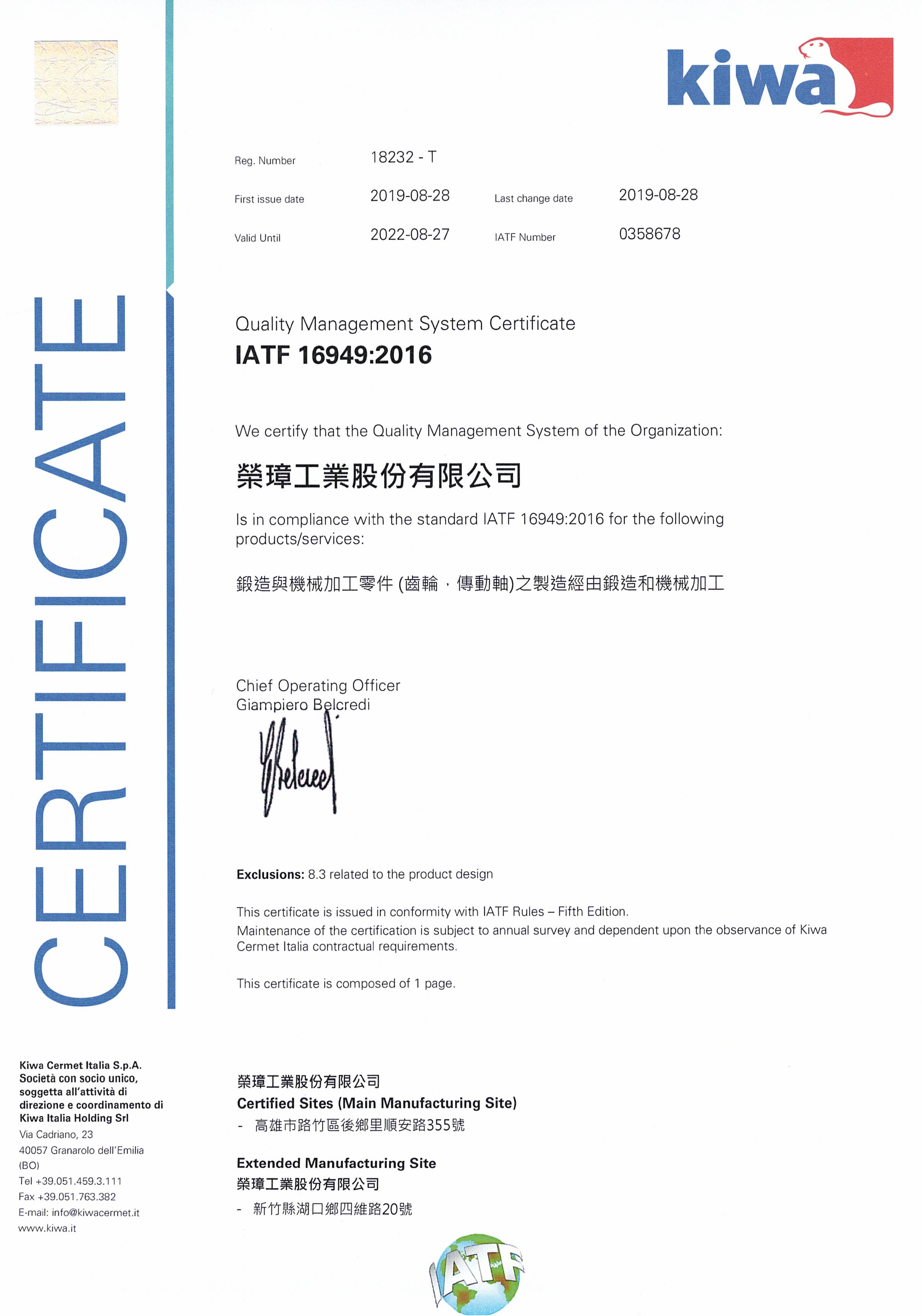 2018 7月通過IATF16949認證